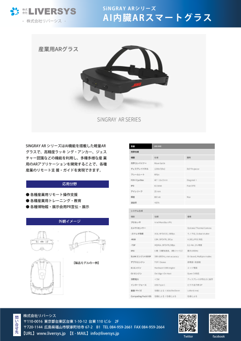 『SiNGRAY ARシリーズ』は、AI機能を搭載した軽量ARグラスです。高精度ラッキング・アンカー、ジェスチャー認識などの機能を利用し、多種多様な産業用のARアプリケーショ...