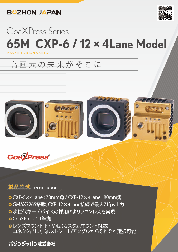 Gpixel社のGMAX3265を搭載し、6500万画素でCXP-12×4Lane出力で最大71fpsの撮像が可能な、高解像度・高速性を兼ね備えたマシンビジョンカメラ。次世代キーデバイスの採用と優...