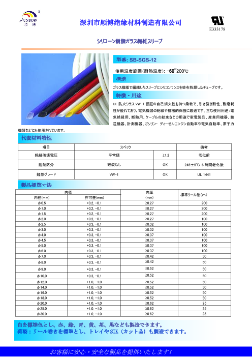 SUNBOWは、2003年に創業された中国のチューブメーカーです。耐温・難燃スリーブ、絶縁チューブなどの開発・製造・販売しており、自動車と家電など多くの製造メーカに製品を供給...
