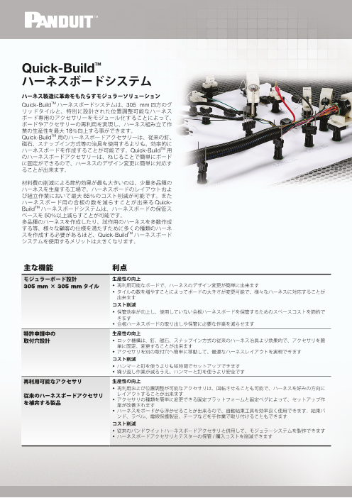 Quick-Build(TM)ハーネスボードシステムは、305mm四方のグリッドタイルと、特別に設計された位置調整可能なハーネスボード専用のアクセサリーをモジュール化することによって、...