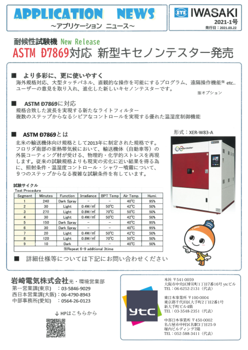 岩崎電気㈱ にて ASTM D7869に対応したキセノンテスター 『XER-W83-A』を新発売します。