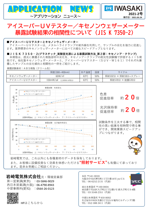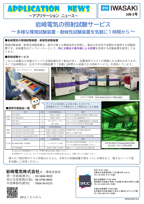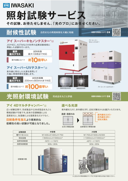 岩崎電気㈱の耐候性試験機、光照射環境試験機の照射試験サービスを活用致しませんか...