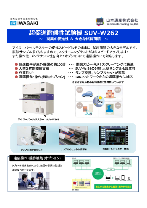 【待望のJIS規格への採用】 アイスーパーUVテスター SUV-W161/262は、 “メタルハライドランプ式促進耐候性試験機”に分類される紫外線特化の耐候性試験装置です。強力な紫外...