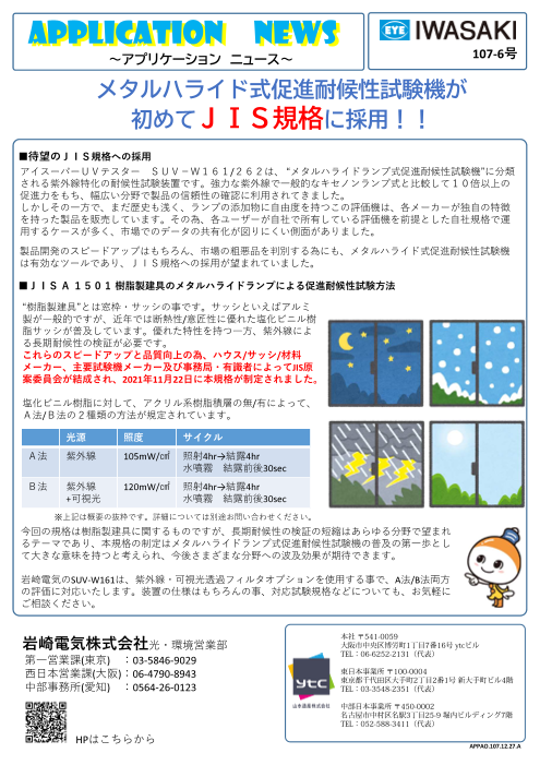 JIS A 1501 樹脂製建具のメタルハライドランプによる促進耐候性試験方法