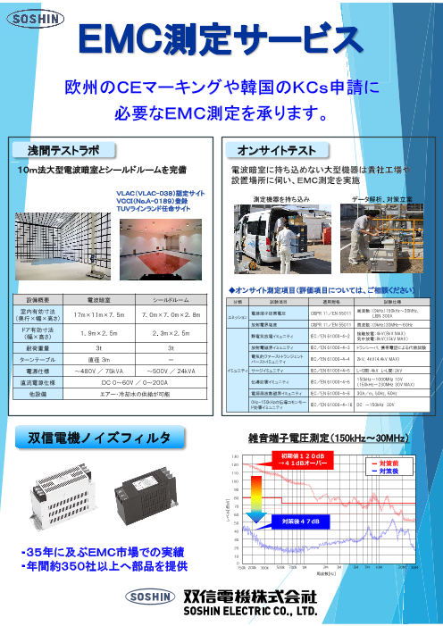 EMCの対策部品、測定試験、対策診断業務及び電波吸収体など、EMCに関わる電波暗室、オープンサイト、シールドルーム開発において20年以上の実績を有しています。 すべて自社設計...