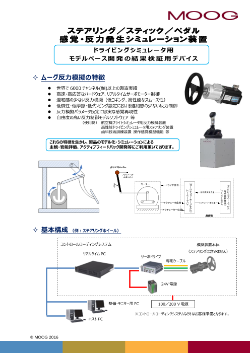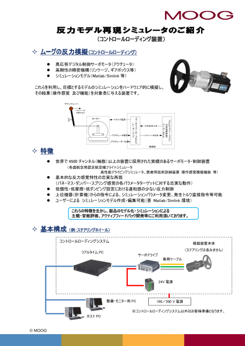 MOOGムーグ反力模擬の特徴・世界で6000 チャンネル(軸)以上の製造実績・高速・高応答なハードウェア、リアルタイムサーボモーター制御・違和感の少ない反力模擬(低コギン...