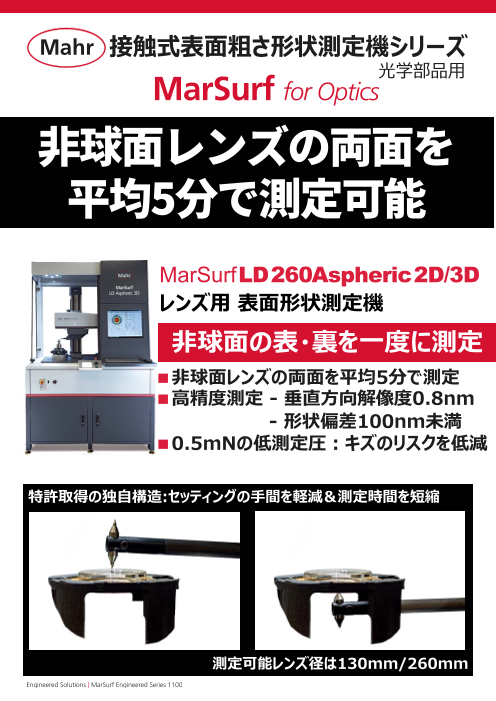 <【Mahr】マールのレンズ用測定機>(輪郭形状・表面粗さ)『MarSurf LD 130/260 Aspheric 2D/3D』は、特許取得の独自構造により、非球面レンズの両面を一度に測定できる表面形...