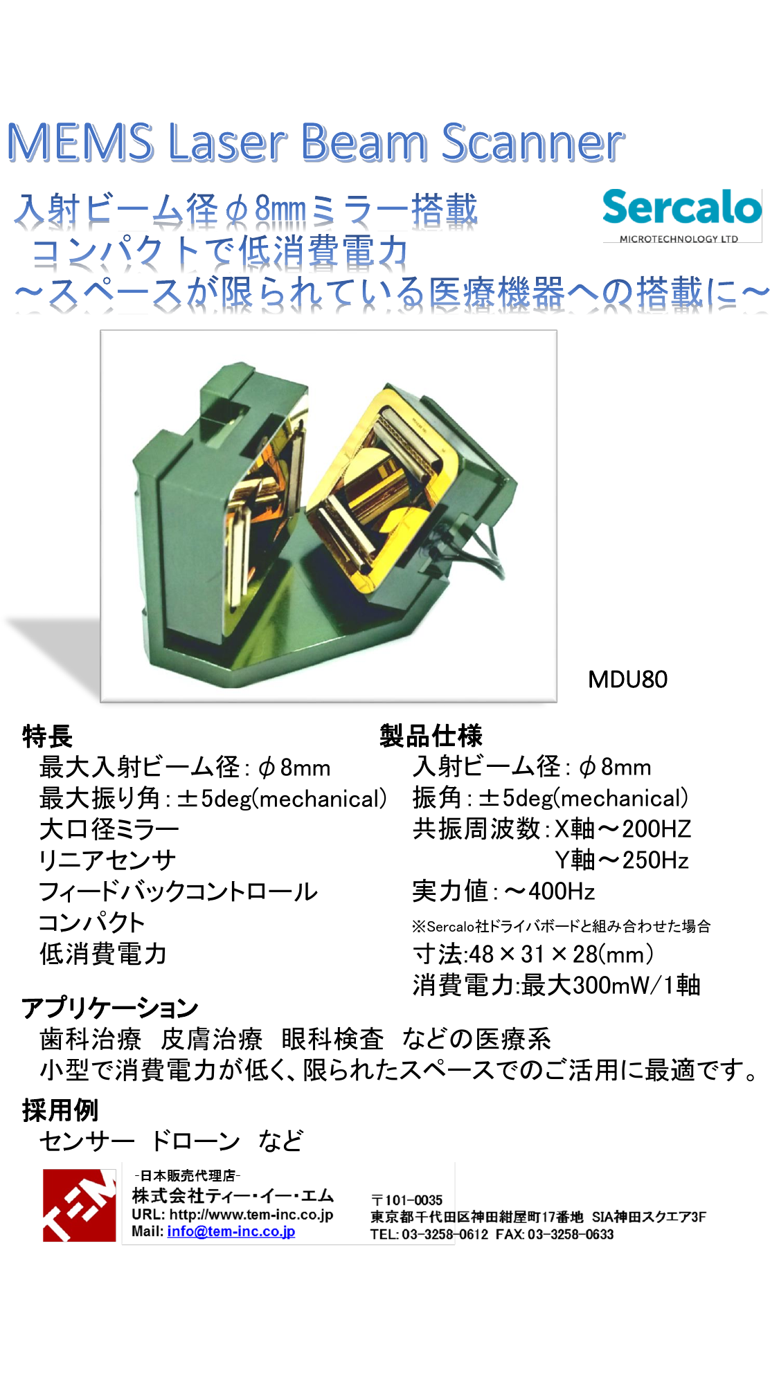大口径ミラー搭載、小型・低消費電力MEMSスキャナ