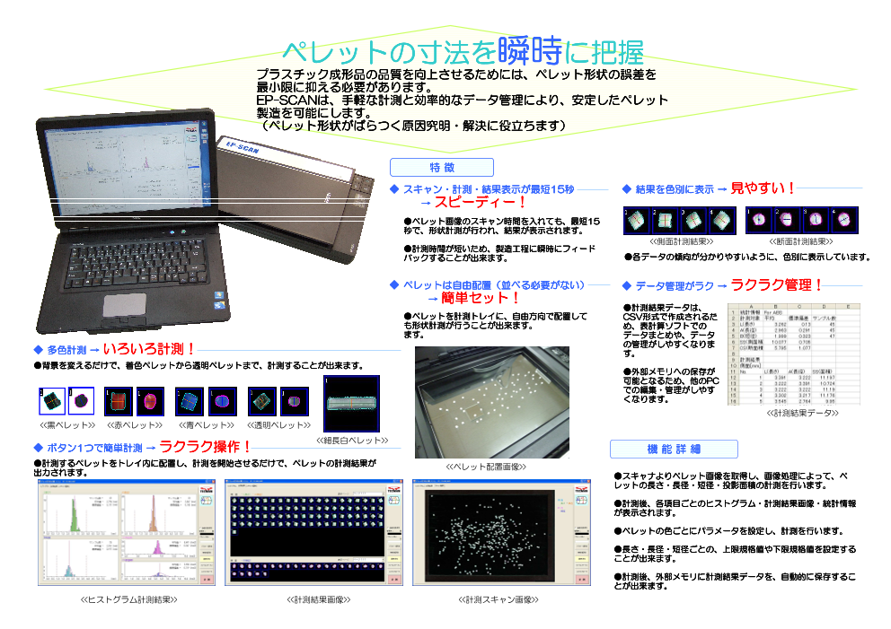 特徴:・プラスチックペレット等、粒状材料の形状を自動で計測できる機器です。・計測トレイにペレットを置くだけで、長さ・長径・短径・投影面積の計測が簡単にできます。...
