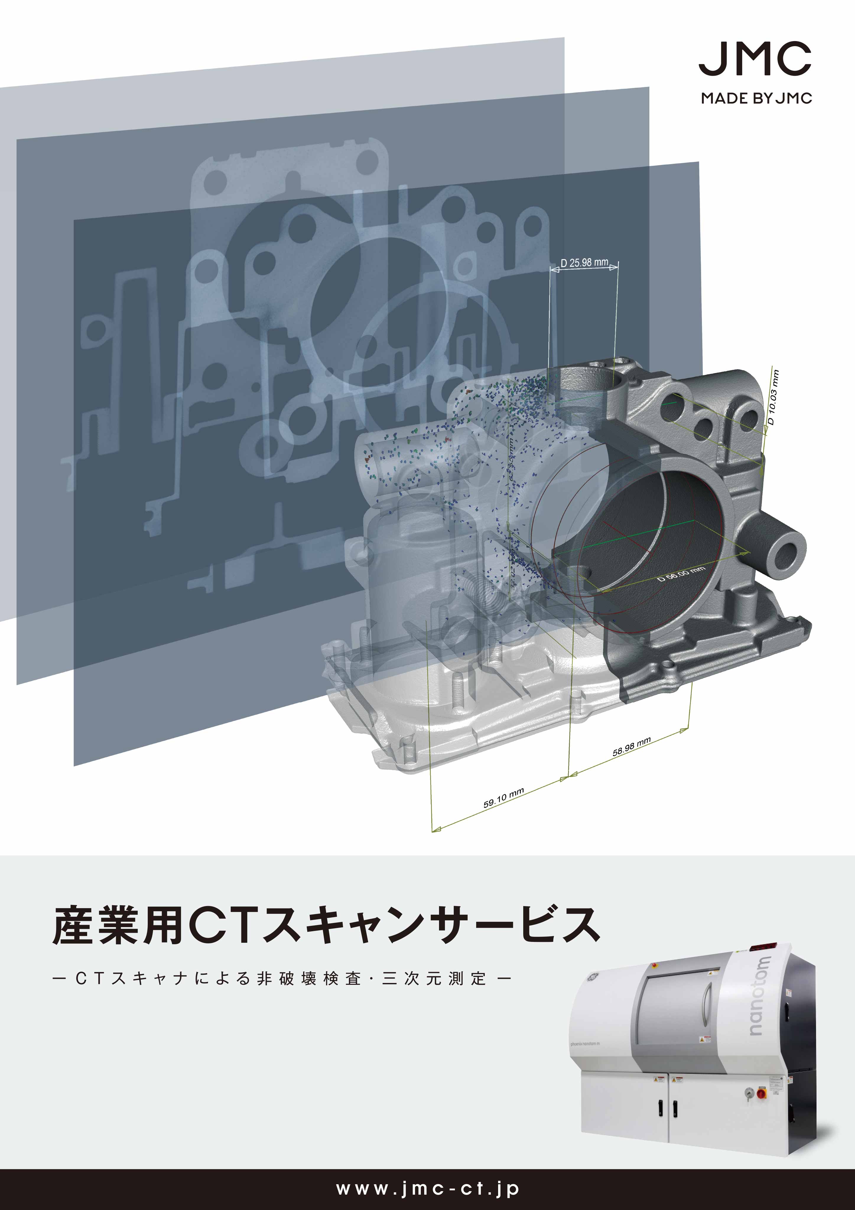 JMCは産業用に特化したCTスキャナを使用した検査・測定サービスを行っています。高精度、高出力のハイエンド産業用CTを5台体制で、製品内部の品質検査や複雑形状の3Dデータ化に...