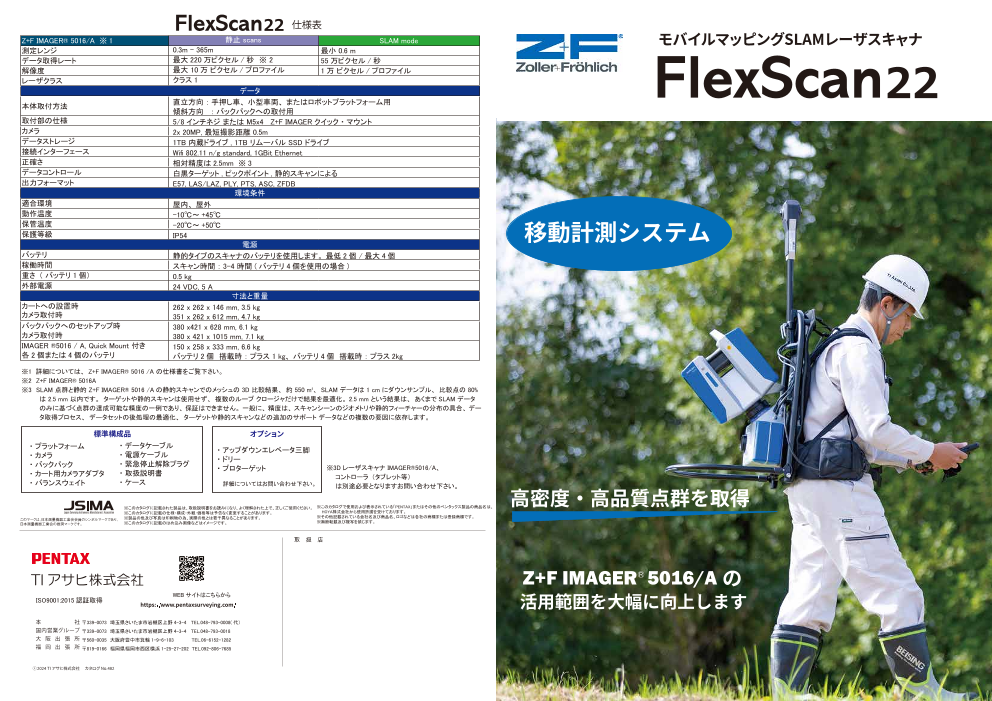 FlexScan22は「バックパック」に高精度TLSのZ+F IMAGER5016を搭載した移動計測システムです。正確な追跡システム、最先端のカメラシステムを搭載高品質・高精度の点群のデ...