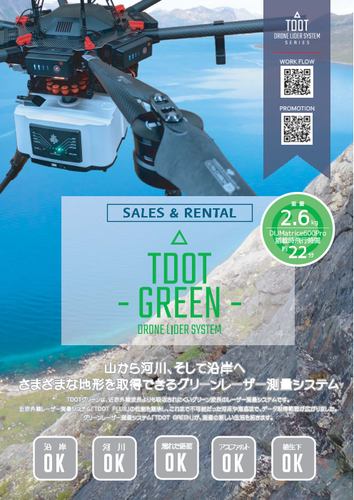 濡れた路面、アスファルト、植生下、そして河川。従来の写真測量や近赤外線レーザーでは測れなかった箇所もTDOT GREENならデータ取得範囲が広がります。弊社でも...
