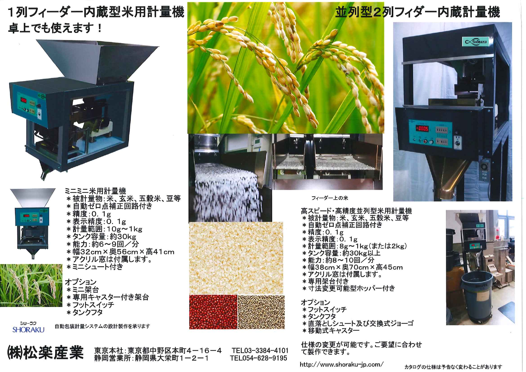 米用計量機 ミニミニ米用計量機/高スピード・高精度並列型米用計量機 カタログのご案...