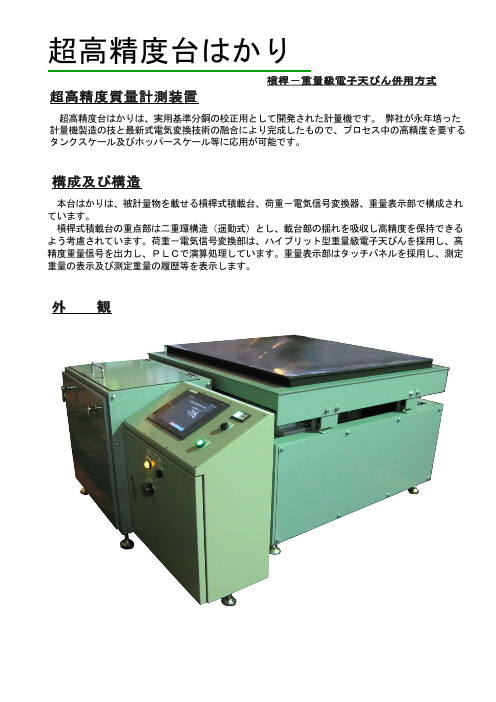 弊社が永年培った 計量機製造の技と最新式電気変換技術の融合により完成したもので、プロセス中の高精度を要する タンクスケール及びホッパースケール等に応用が可...