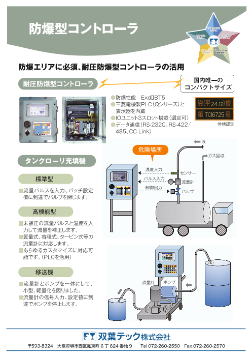 耐圧防爆型電磁弁搭載。移送ポンプやバルブ開閉の制御が可能です。