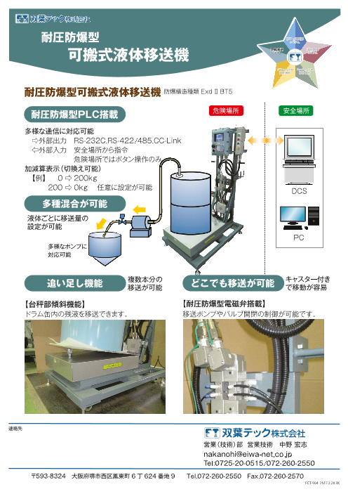 <耐圧防爆型PLC搭載>・多様な通信に対応可能・加減算表示(切換え可能)<多種混合が可能>・液体ごとに移送量の設定が可能・多様なポンプに対応可能<追い足し機...