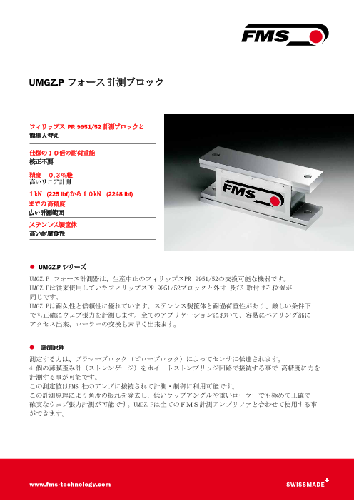 FMS社では紙・フィルム・シート等コンバージョン産業用としてベアリング付ロードセルを始め、種々の張力計測器、アンプリファと正確な位置決めを行えるウェブガイドを製造し...