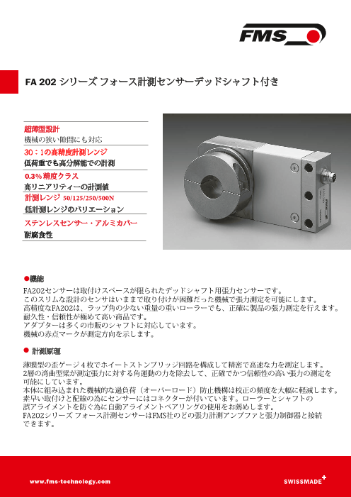 FA202センサーは取付けスペースが限られたデッドシャフト用張力センサーです。このスリムな設計のセンサはいままで取り付けが困難だった機械で張力測定を可能にします。高精...
