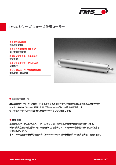 IMGZ 計測ローラシリーズは紙・フォイルなどの連側プロセスの機械の搭載に使用されるセンサです。センサは機械のフレームに直接またはブラケットのいずれでも取り付け可能です...