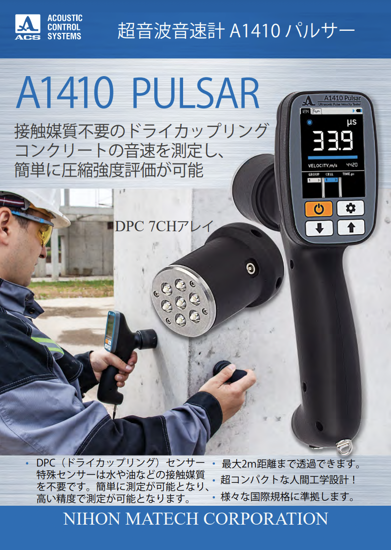接触媒質不要のドライカップリング コンクリートの音速を測定し、 簡単に圧縮強度評...