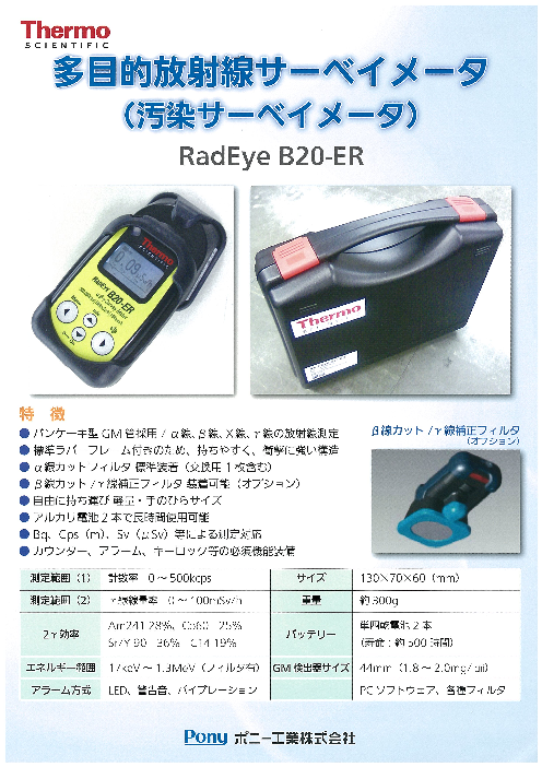 特徴・パンケーキ型GM管採用/α線、β線、X線、γ線の放射線測定・標準ラバーフレーム付きのため、持ちやすく、衝撃に強い構造・α線カットフィルタ標準装着(交換用1枚含む)...