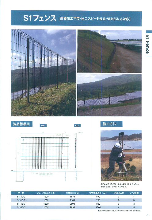 S1フェンス [基礎施工不要・施エスピード最短・傾斜部にも対応]