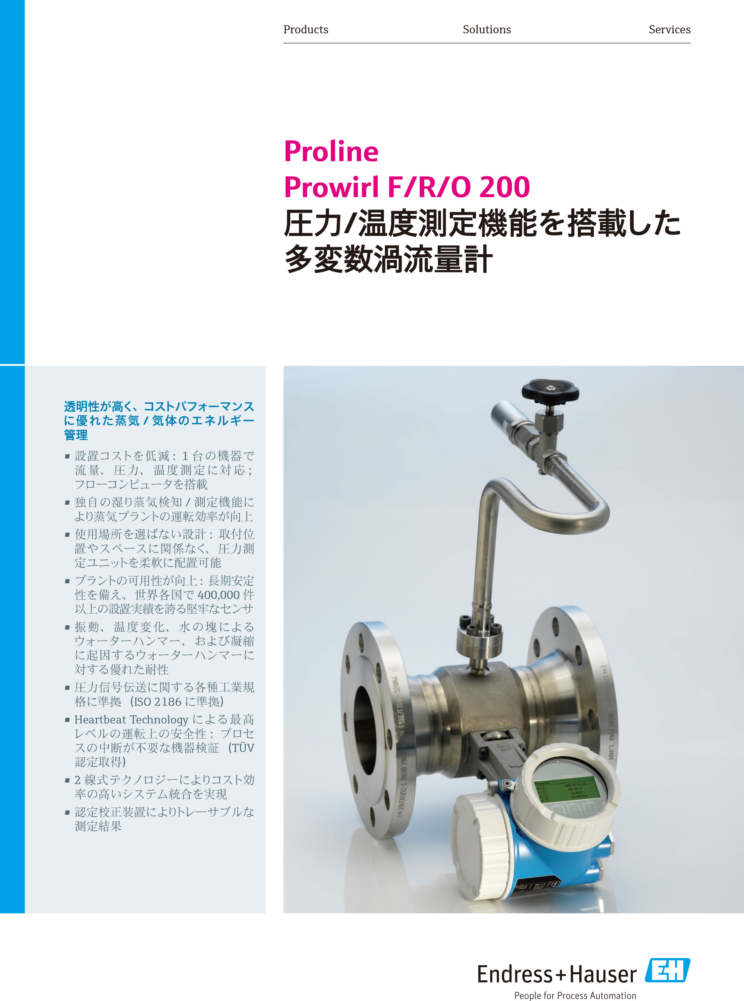 Proline Prowirl 200シリーズは圧力/温度側的機能を搭載した多変数渦流量計です。透明性が高く、コストパフォーマンスに優れた蒸気/気体のエネルギー管理に最適です。◆設置...