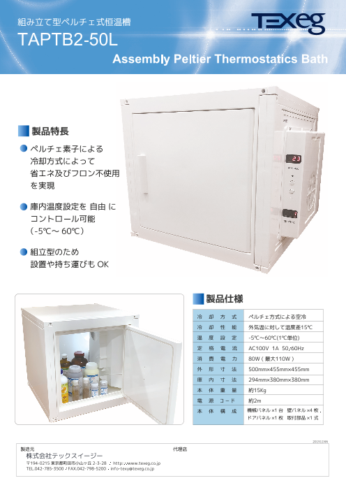 ◆ペルチェ素子による冷却方式によって省エネ及びフロン不使用を実現◆庫内温度設定を自由にコントロール可能(-5℃〜60℃)◆組立型のため設置や持ち運びもOK◆詳細はカタログ...