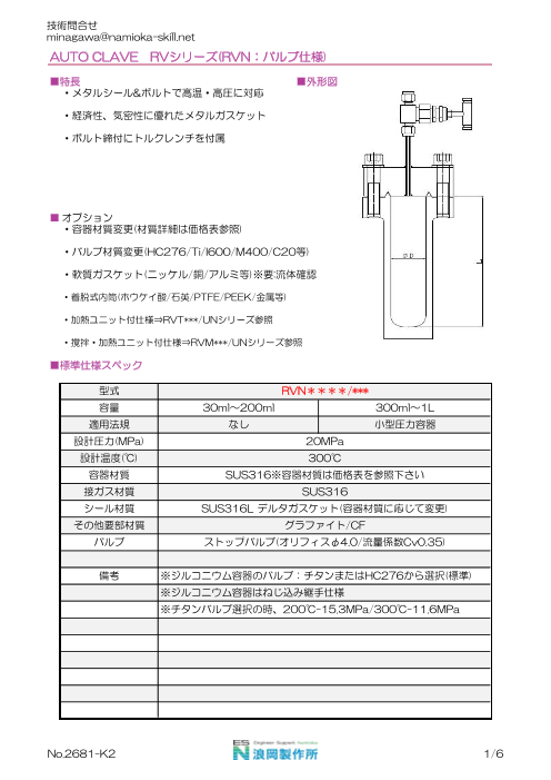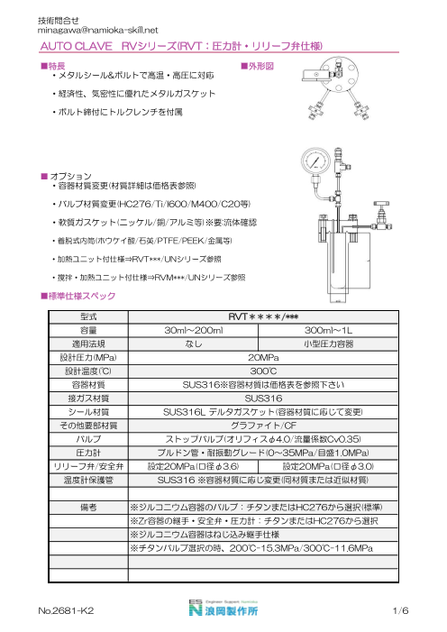 【RVシリーズ】『RVN』はオートクレーブ(反応器)です。メタルガスケット&ボルトによるシール方式です。経済性、気密性に優れたデルタガスケットを採用し、ガスケットの繰り返...