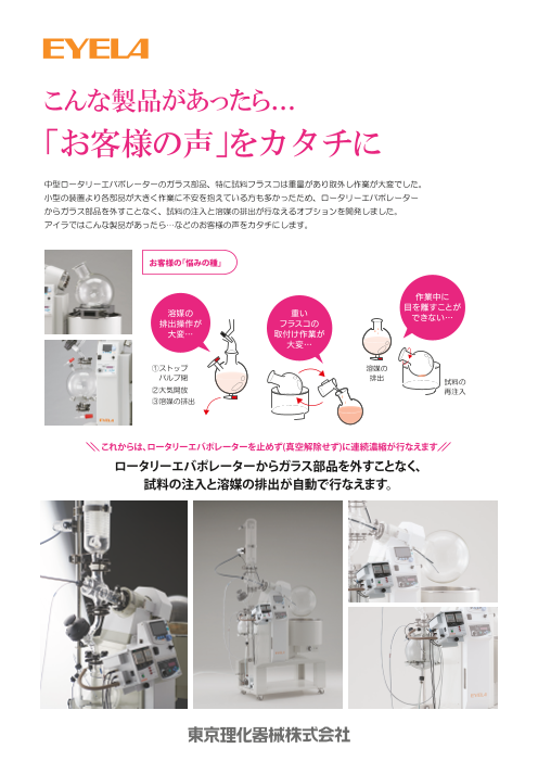 有機合成化学や天然物化学などのケミカル分野はもちろん、食品分析・環境分析・法医学分析・品質分析など各種の分析試験、あるいは生化学・分子生物学実験まで、サンプルの濃縮...