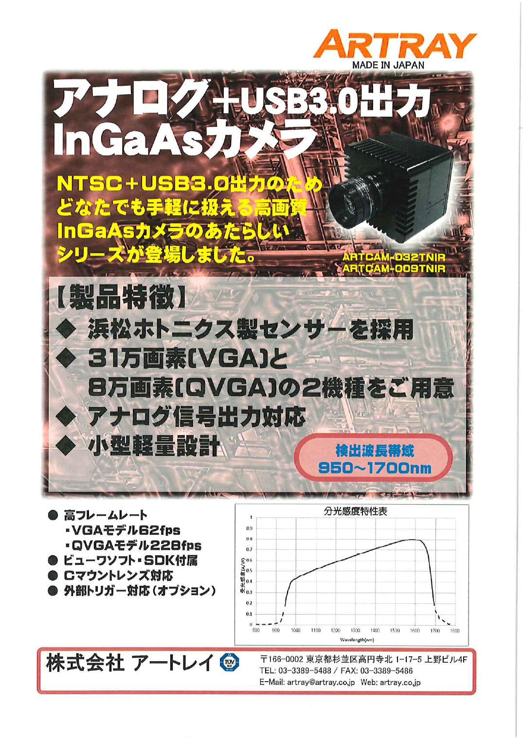 アナログ+USB3.0出力 InGaAsカメラ カタログのご案内です。