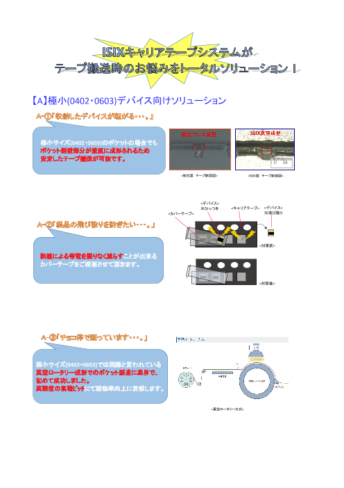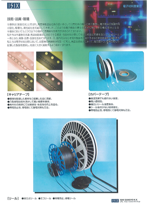 ◆キャリアテープ 凸型金型技術を活かして高い精度を確保 長尺化の推進にて品質確保・生産性の向上を図る 帯電防止性、導電性にて静電対策も万全◆カバーテープ 高...