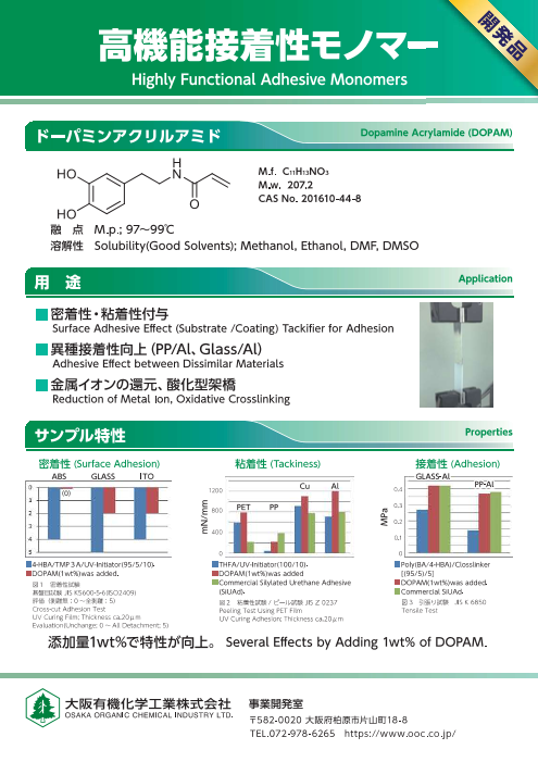 ムール貝の接着成分であるドーパミンを分子内に持つバイオミメティクス(生物模倣)モノマーとなっており、ドーパミンの特徴的な構造であるカテコール基を有しております。...