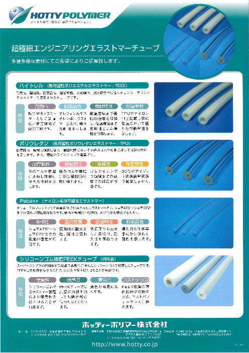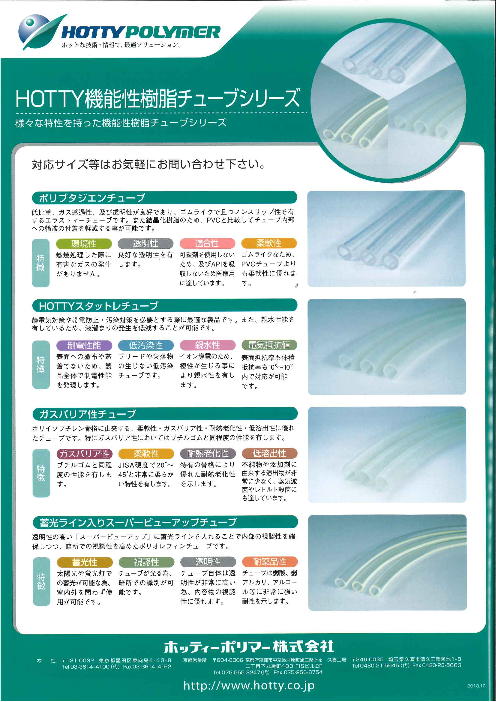 帯電防止性能を持ったHOTTYスタットレ、非常に高いガスバリア性能を持つポリイソブレン材質のガスバリア性チューブ等がございます。対応サイズ等はお気軽にお問合せくだ...