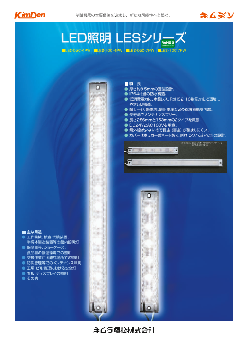 工作機械や制御盤の盤内灯、保冷庫、ショーケース、食品棚といった低温環境の灯り、工場・ビル建物の安全灯、看板・ディスプレイ灯などに。省スペースで確実な光量が得られ...