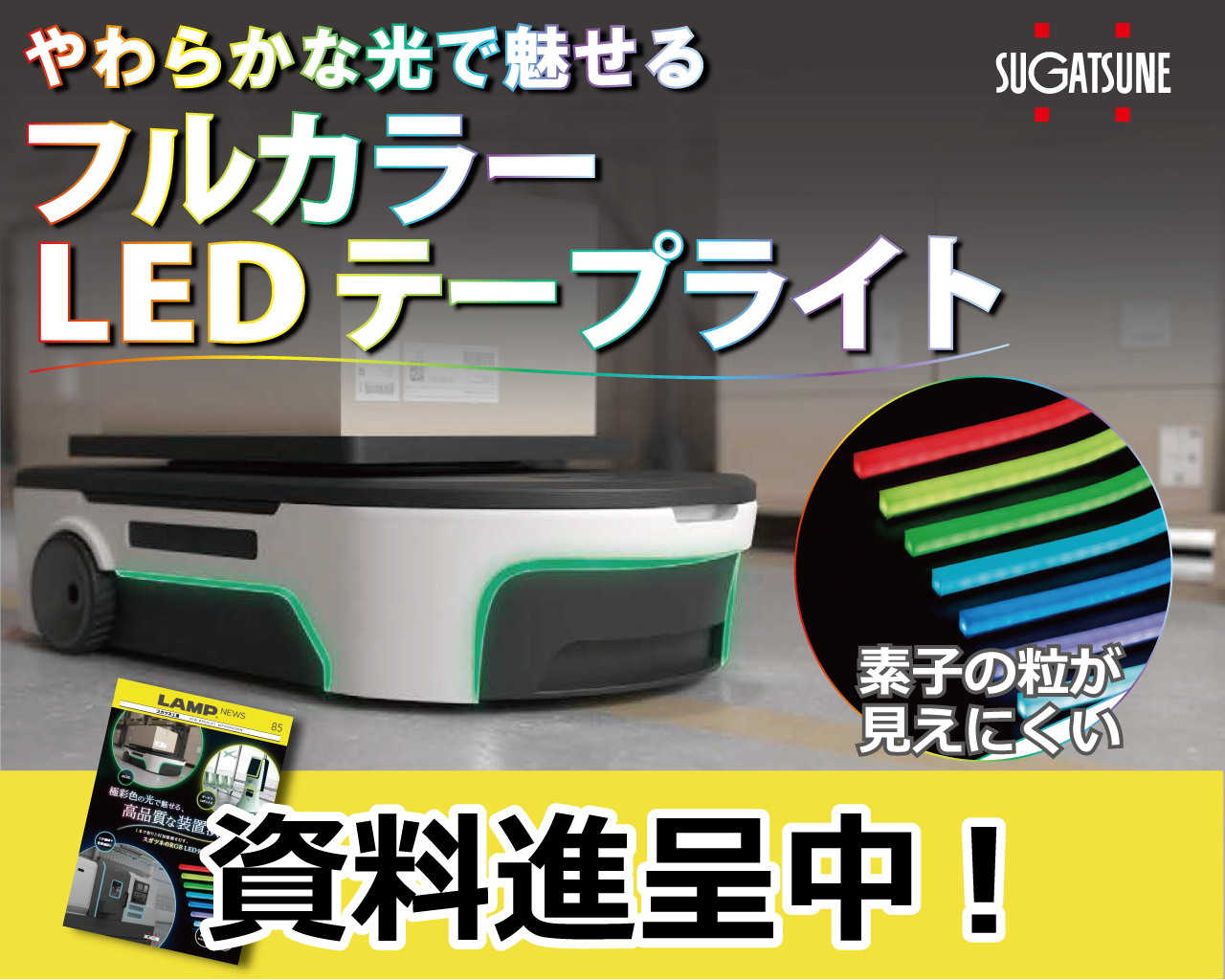 従来テープライトの約半分以下である幅4.5mmという細さを実現したCOBテープライト。1mあたり528粒の極小LED素子を並べたことにより、切れ目のない直線的な光を表現することが...