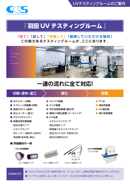 ワークや硬化材料をお持ちいただくだけで、 UV硬化に関する様々な実験・評価を行っ...