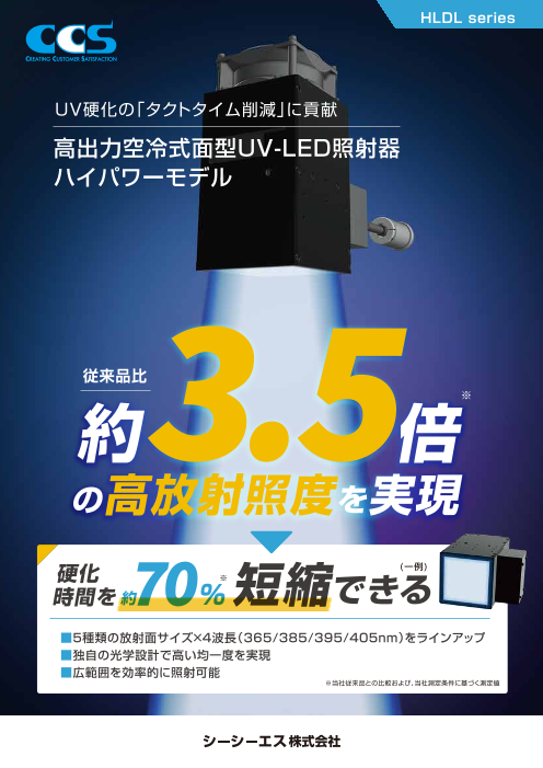 従来品比 約3.5倍の高放射照度を実現 硬化時間を約70%短縮できる