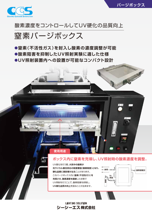 ・窒素(不活性ガス)を封入し酸素の濃度調整が可能・酸素阻害を抑制したUV照射実験に適した仕様・UV照射装置内への設置が可能なコンパクト設計シーシーエスの羽田UVテス...