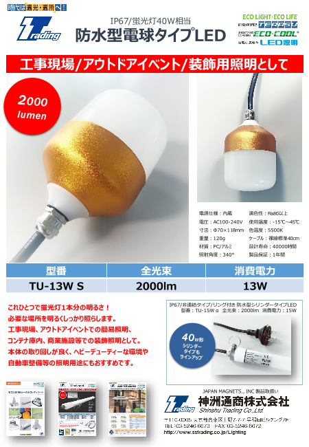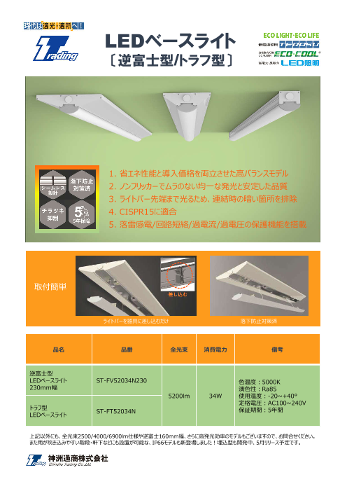 《軽》筐体にマグネシウム合金を採用することで、軽量化を実現。取付に追加工事がなく、施工が簡単です。《省》製造業の省エネ対策に効果的な仕様を実現。高輝度、...