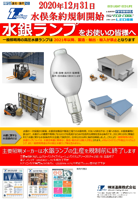 一般照明用の高圧水銀ランプは、2021年以降、製造・輸出・輸入が禁止となります。