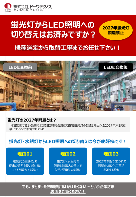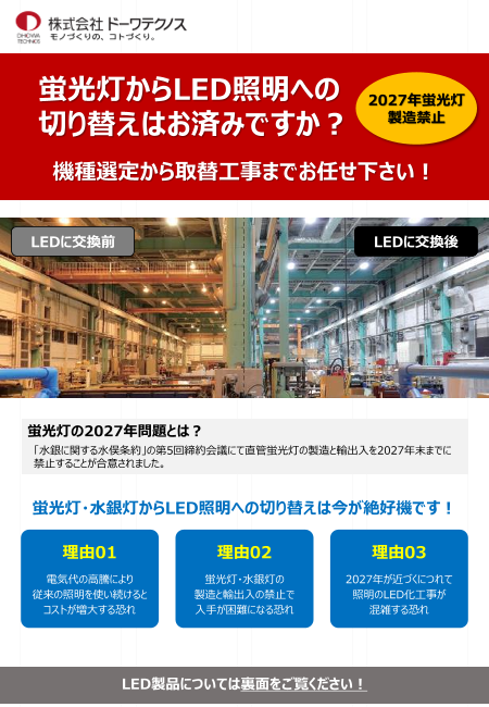 蛍光灯は、2027年末までに製造・輸出入が禁止されることが決定しています。蛍光灯・水銀灯からLED照明への切り替えは今がチャンスです!理由1:電気代の高騰によりコスト...
