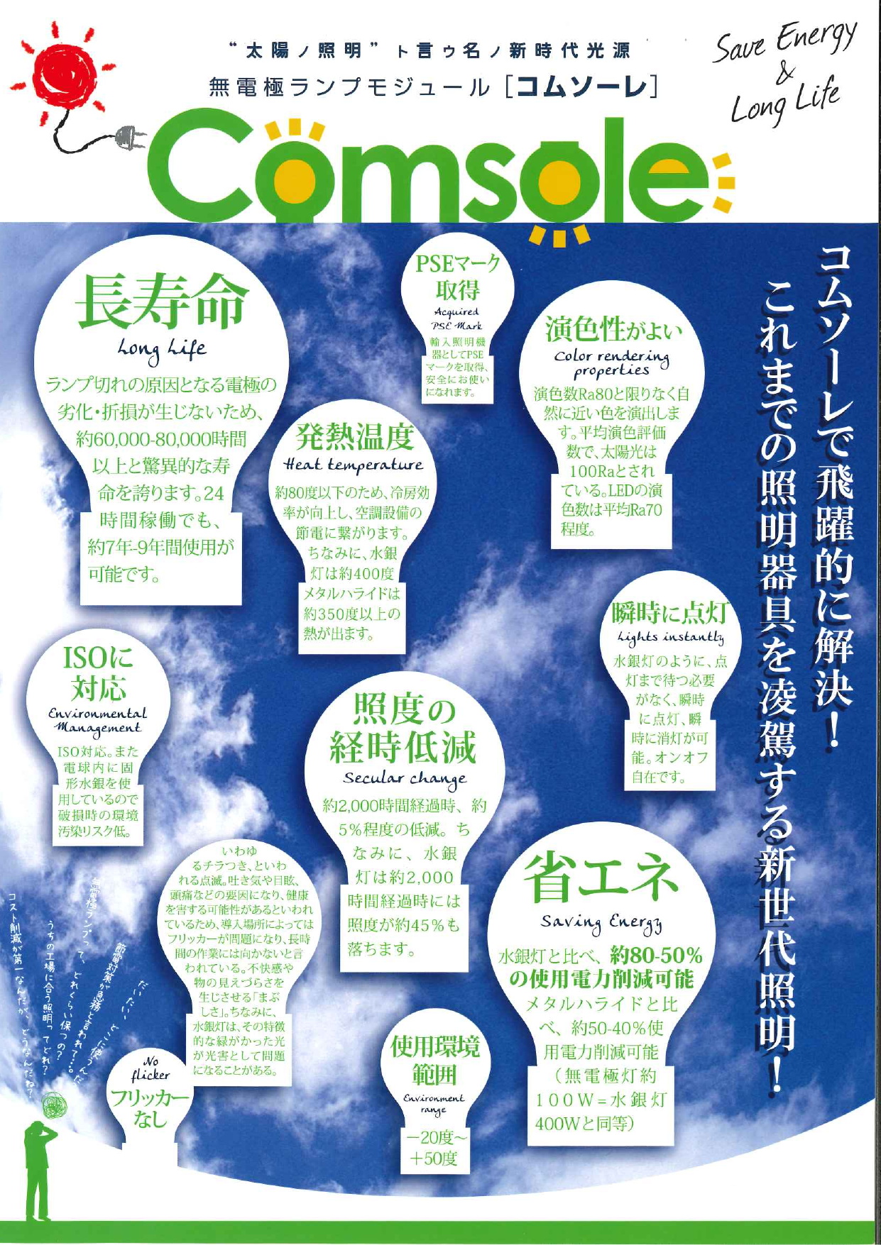 ・長寿命・演色性がよい・瞬時に点灯・照度の経時低減・フリッカーなし・水銀灯と比べ、約80-50%の使用電力削減可能・約80℃以下のため、冷房効率が向上し、空調設...