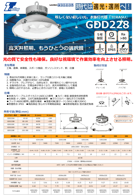 ● 高天井照明、もうひとつの選択肢ギラギラとした眩しさのない、優しい光の質で安全性を確保。良好な視環境で作業効率を向上させる照明です。プレイヤー(現場)目線で選ぶな...