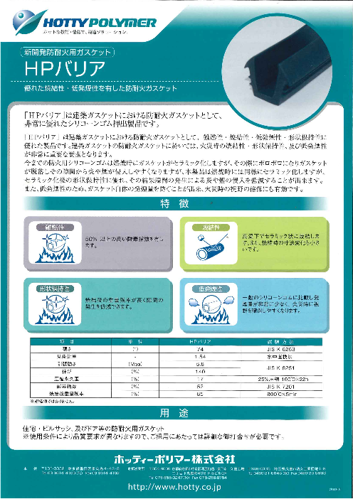 「HPバリア」は建築ガスケットにおける防耐火ガスケットとして、難燃性・焼結性・低反発性・抵発煙性・形状保持性に優れた製品です。建築ガスケットにおける防耐火ガスケット...