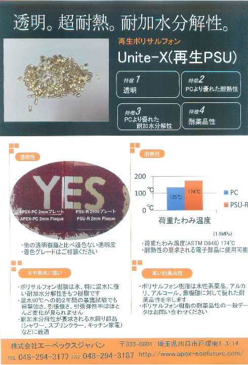 特徴1 透明特徴2 PCより優れた耐熱性特徴3 PCより優れた耐加水分解性特徴4 耐薬品性◆詳細はカタログをダウンロードしてご覧ください。