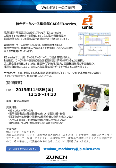 電気制御・電装設計のためのソフトウェア「E3.series」をご紹介するWebセミナーを開...