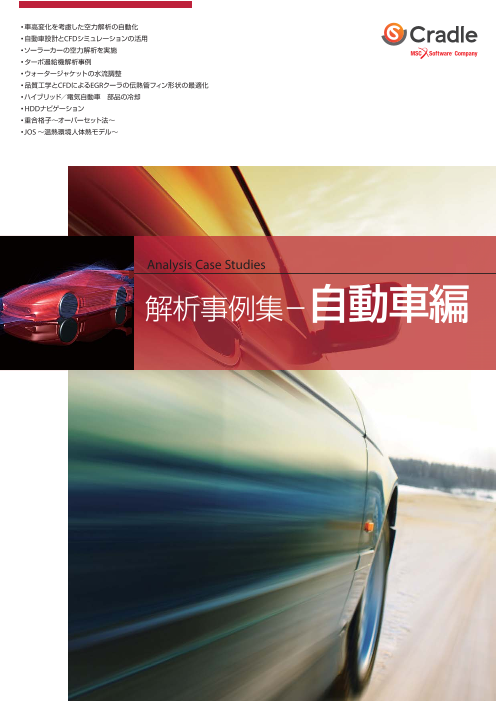 株式会社ソフトウェアクレイドルは、国産三次元熱流体解析ソフトウェアの開発・販売、教育・サポートまで一貫したサービスを提供しています。掲載内容•車高変化を考慮し...