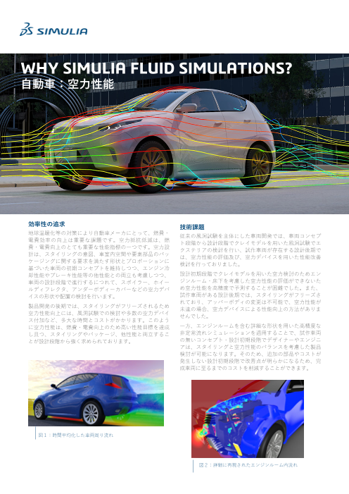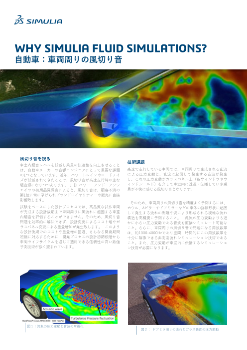 地球温暖化対策により自動車メーカにとって、燃費・電費効率の向上は重要な課題です。空力抵抗低減は、燃費・電費向上において 重要な性能指標の一つです。空力設計は、スタイ...
