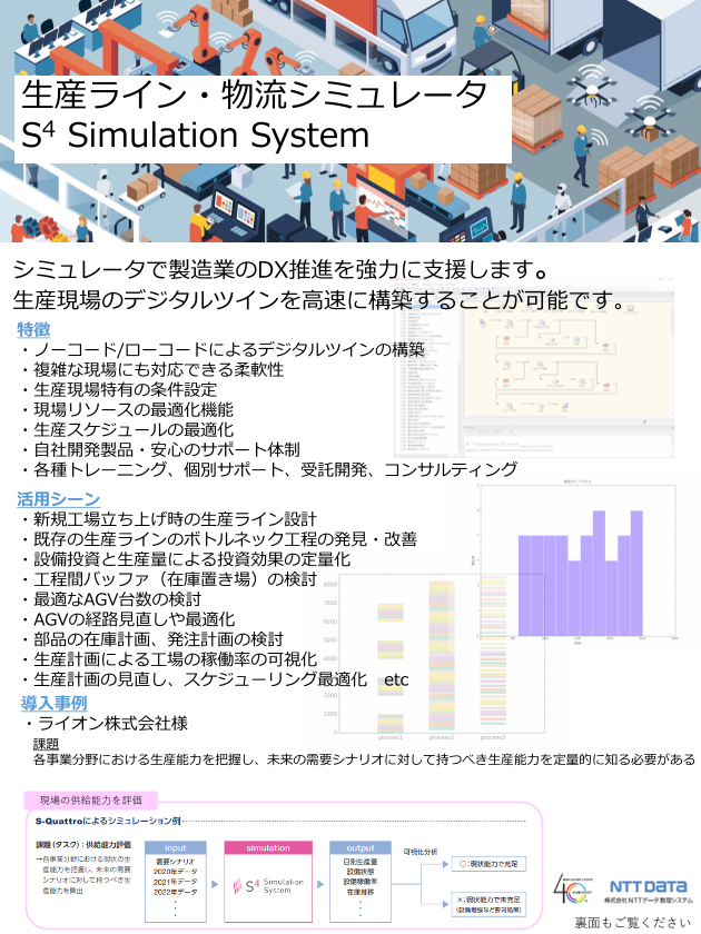 ・ノーコード/ローコードによるデジタルツインの構築・複雑な現場にも対応できる柔軟性・生産現場特有の条件設定・現場リソースの最適化機能・生産スケジュールの最適化...